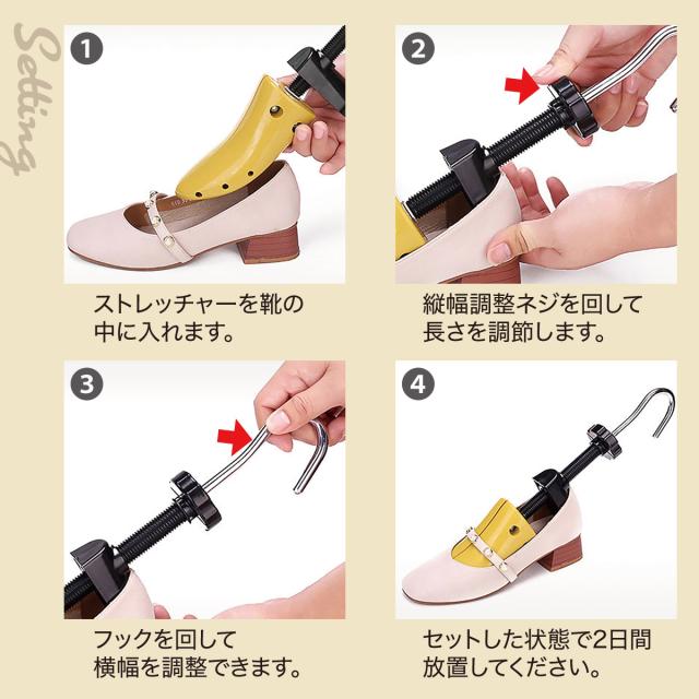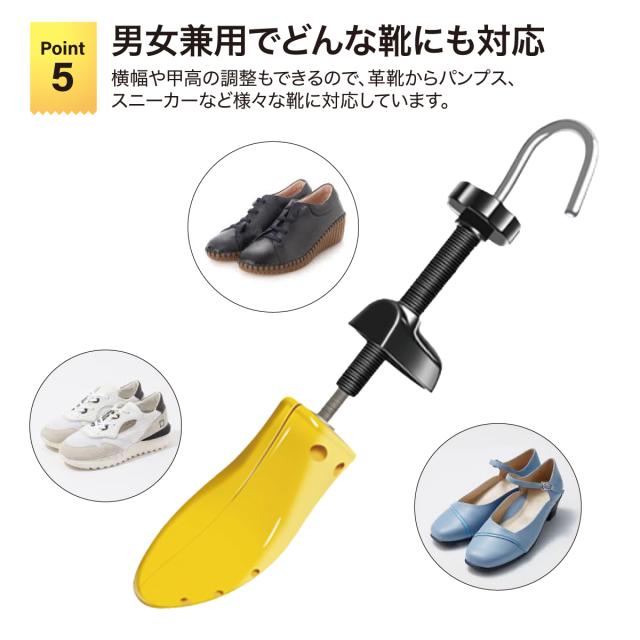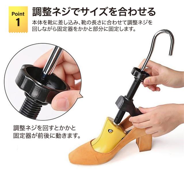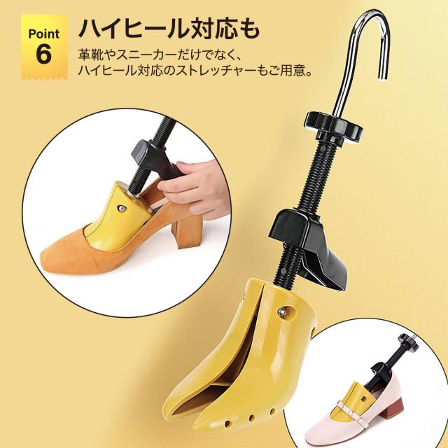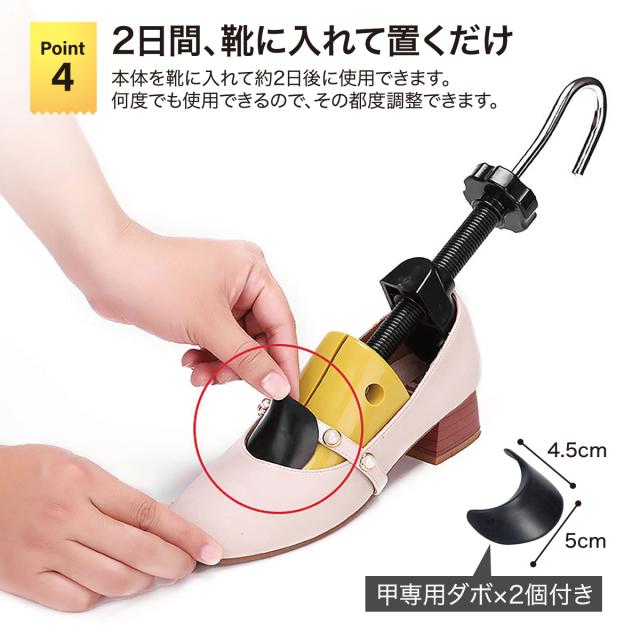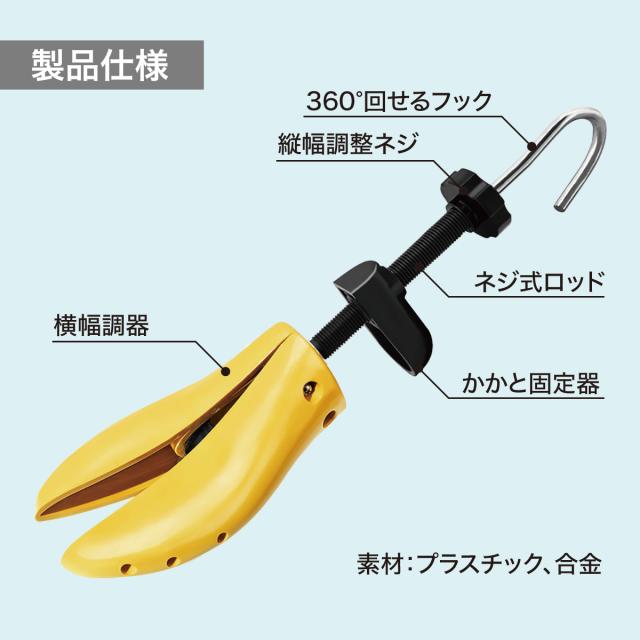 - 持ってた木製のシューズストレッチャーが壊れて、ネットで購入したパンプスが縦横窮屈で慌てて購入しました。 甲高幅広の足には、シューズストレッチャー場必須なので、使い方も簡単で良かったです。