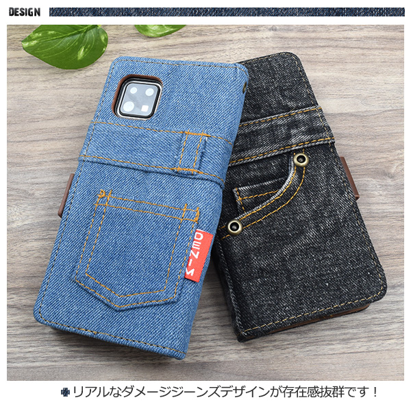 衝撃やキズなどからスマホを守ります。 内部ケースはソフトケースのため、着脱が簡単です。 リアルなダメージジーンズデザインが存在感抜群! 内側は落ち着いたレザーデザインです。 背面を折り返すとスタンドとして使用でき、動画視聴に便利です。 落下防止に便利なストラップホール付きです。 開閉が簡単な上下式マグネットフラップを採用! 閉じるだけでしっかりとケースを固定できます。 横開きタイプなので、手帳のように使うことができます。 また、内側に2つのカードポケットとサイドポケット付きです。 | ||||||||||||||