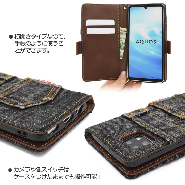 スマホケース AQUOSsense6/sense6s SH-54B SHG05 SH-RM19 SH-M19 SHG07用 ジーンズデザイン デニムデザイン手帳型ケース スタイリッシュ おしゃれ ユニセックス 保護 カバー 傷防止 横開き ジーンズ アクオスセンス6 au docomo 楽天モバイル SIMフリー 青色 ブルー