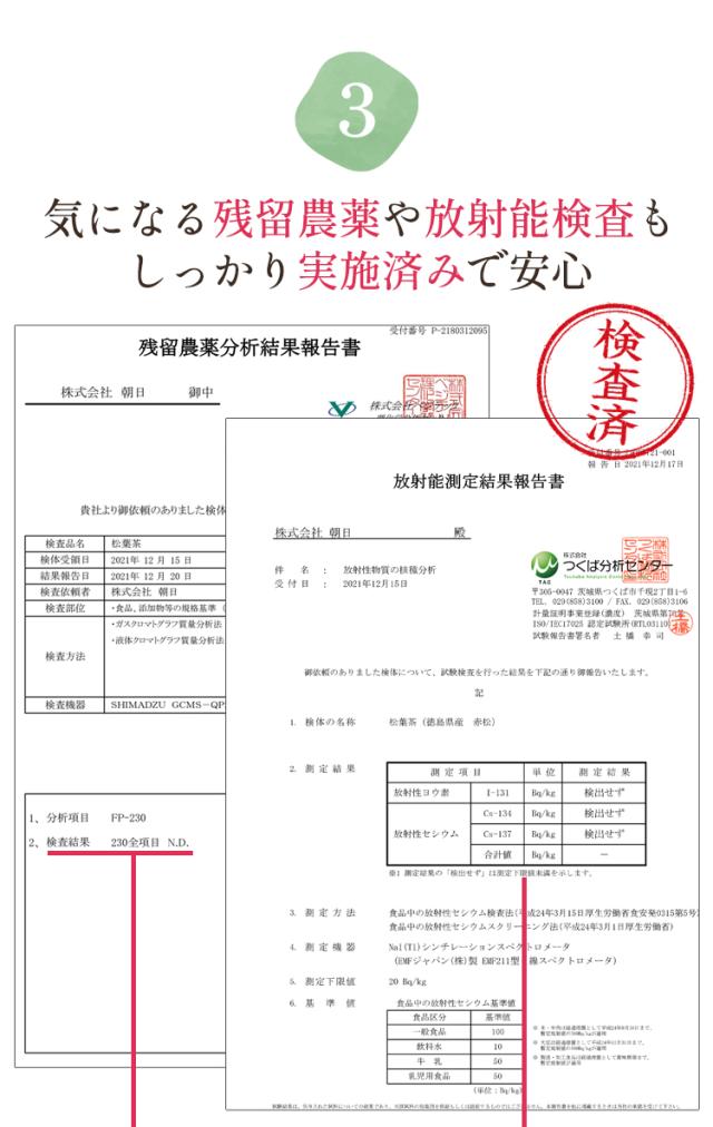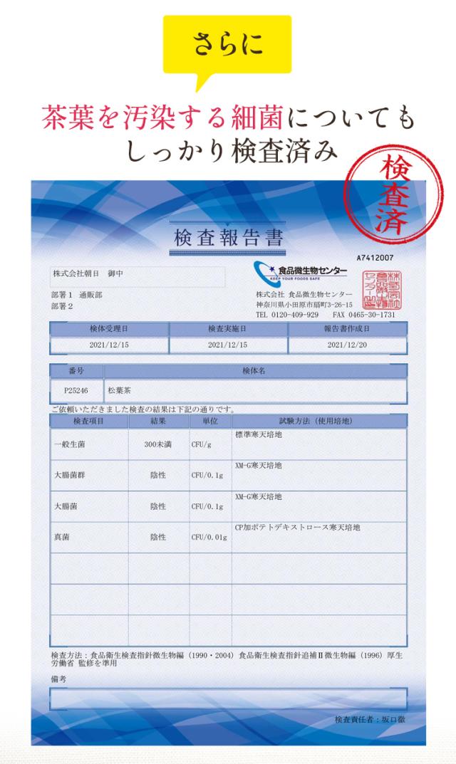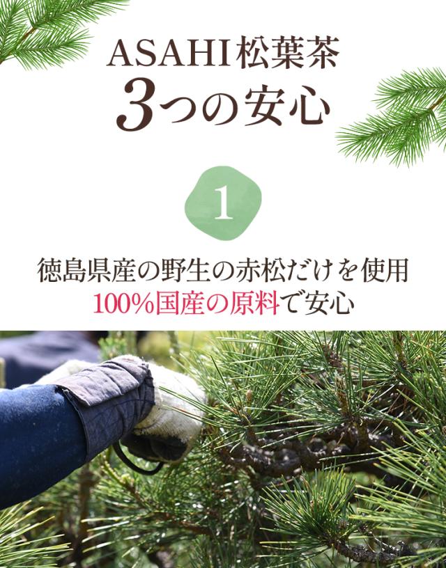 朝日の松葉茶は、徳島県産の野生の赤松だけを使用した、松葉の恵みをたっぷりいただける健康茶です。
