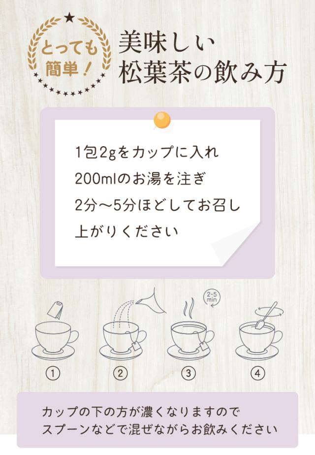 - 身体に良いと知り初めて松葉茶を飲みました。こんなに渋み?があるんだと思いました。慣れれば大丈夫かと思います!!慣れるまではブレンドしたり、1日かけて少しずつ飲みたいと思います。