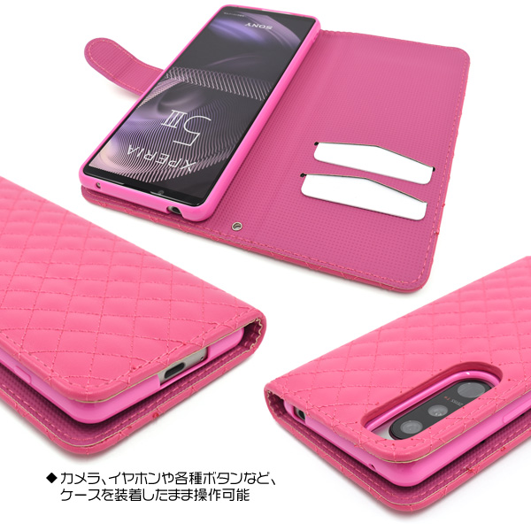 スマホケース Xperia 5 III SO-53B SOG05 A103SO 手帳型 キルティングレザー 携帯カバー ベーシック 携帯ケース シンプル かわいい 上品 お洒落 可愛い オシャレ おしゃれ スマホカバー フェミニン クラシカル 装着簡単 auスマホ au携帯ケース スマートフォンケース