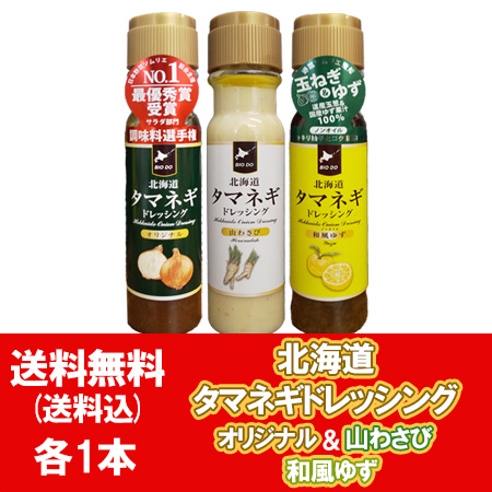 北海道 タマネギドレッシング 送料無料 玉ねぎドレッシング オリジナル 1本 山わさび 1本 和風ゆず 1本 計3本 たまねぎ ドレッシング やまわさび ゆず 柚子