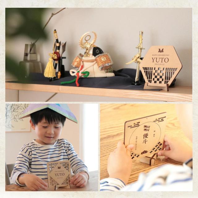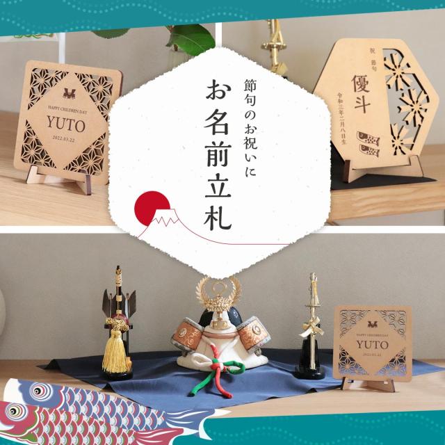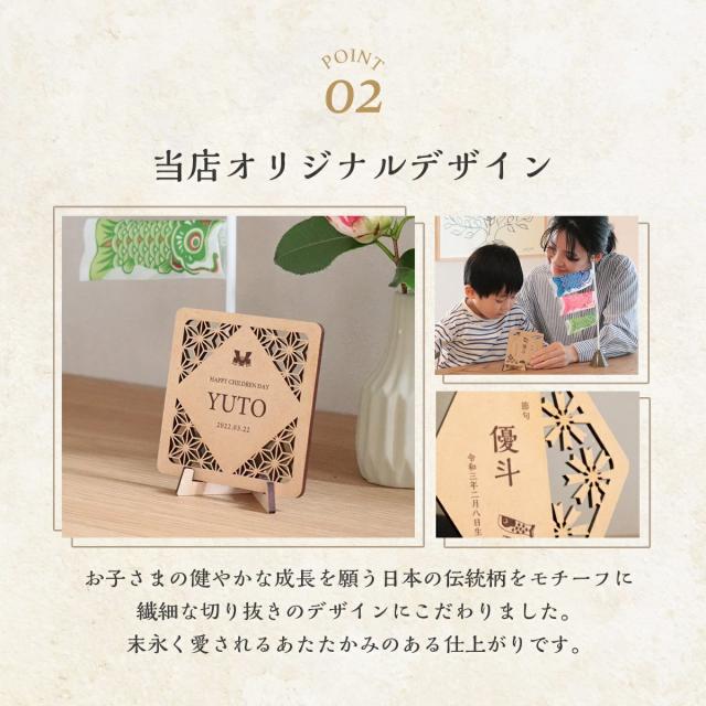 名入れできる こどもの日用立て札 ローマ字 日本語対応 初節句 名前 木札 孫 両親 日付 オシャレ インテリア ギフト 子供の日 端午の節句 イベント 兜 鯉のぼり 立て札 立札 名札 名前 送料無料 スタンド付き