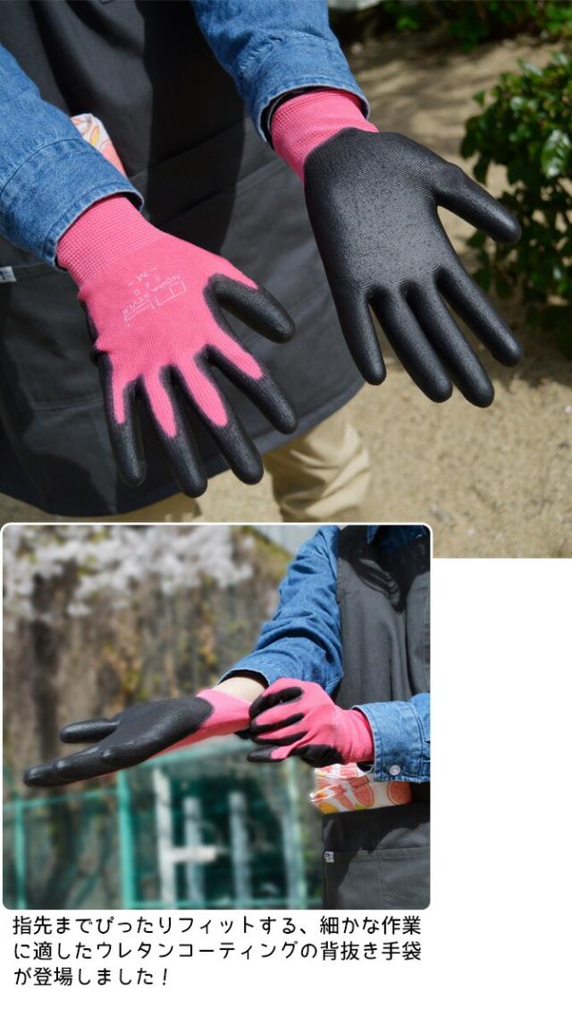 「のらスタイル」の細かな作業にも適しているウレタンコーティングの背抜き手袋「農家さん手袋」です。