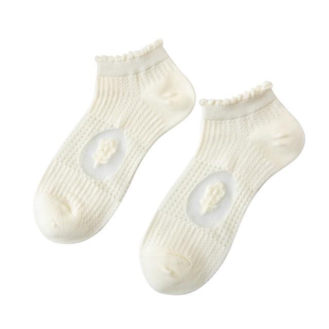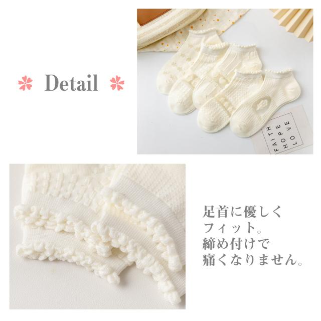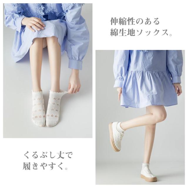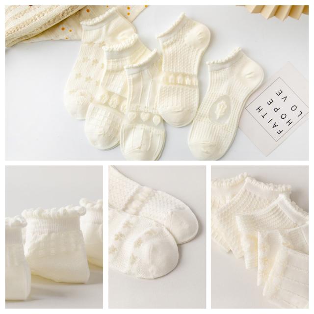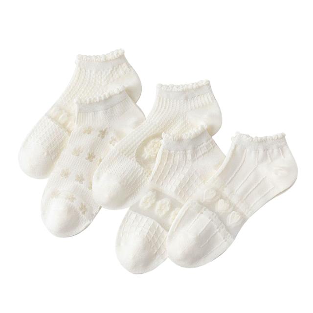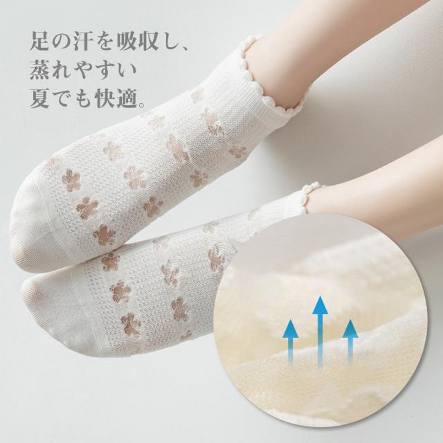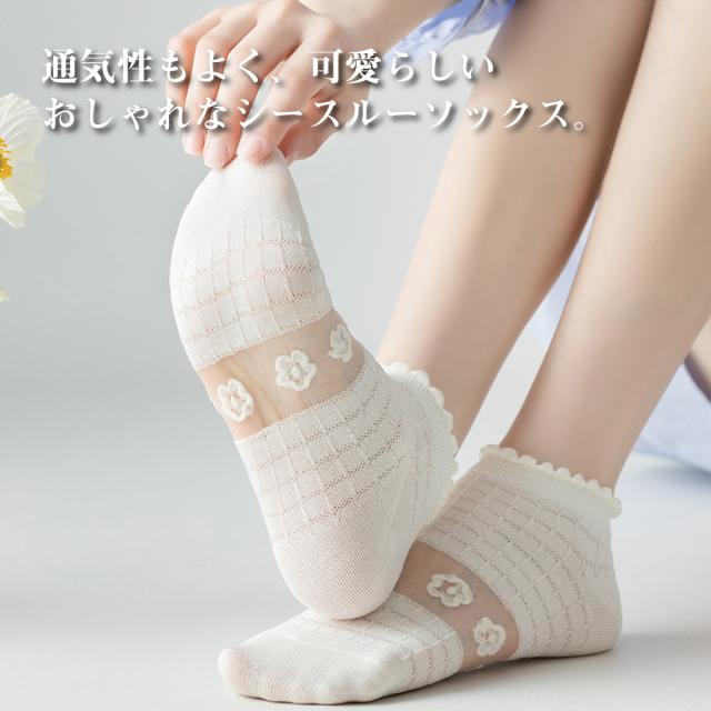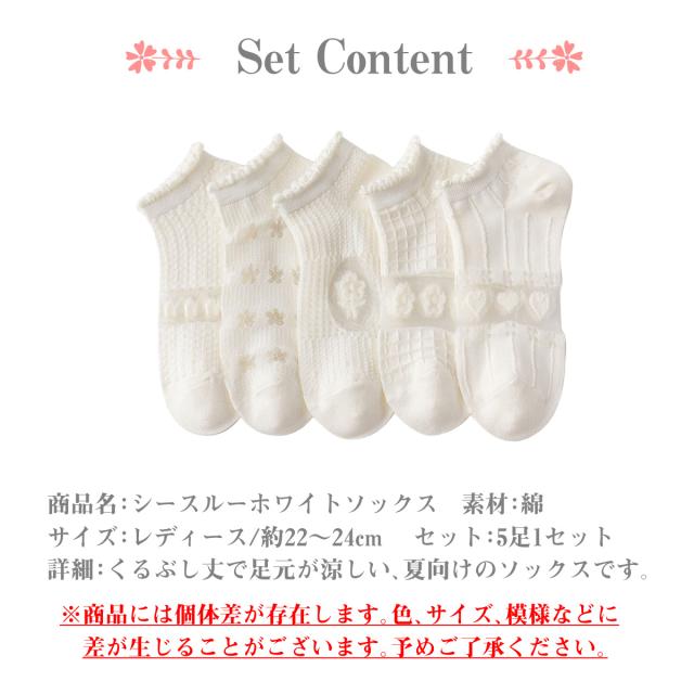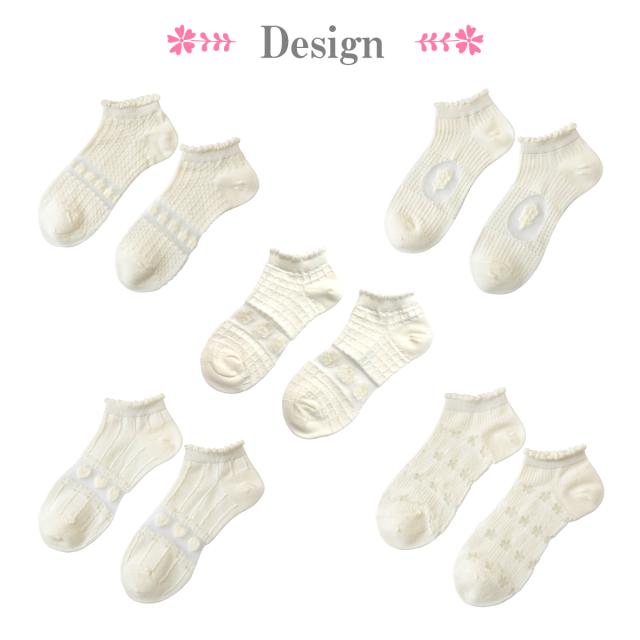 レディース 靴下 シースルーホワイト柄 5足セット ソックス 涼しい おしゃれ カラフル 大人 かわいい 春夏用 socks13