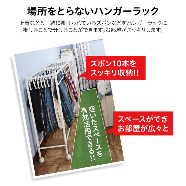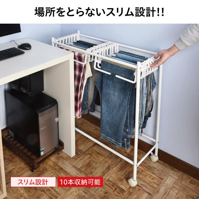 ズボンハンガーラック スラックスハンガー 10本収納 キャスター付き 省スペース ズボン ハンガーラック 便利グッズ 便利 新生活 zubon-rack