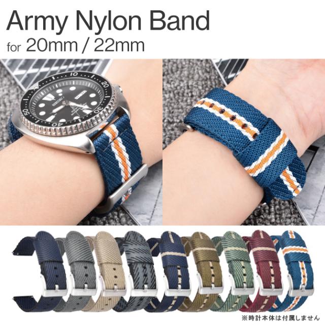 時計ベルト ナイロン 20mm 時計ベルト ナイロン 22mm ナイロンバンド アーミー おしゃれ シルバーバックル