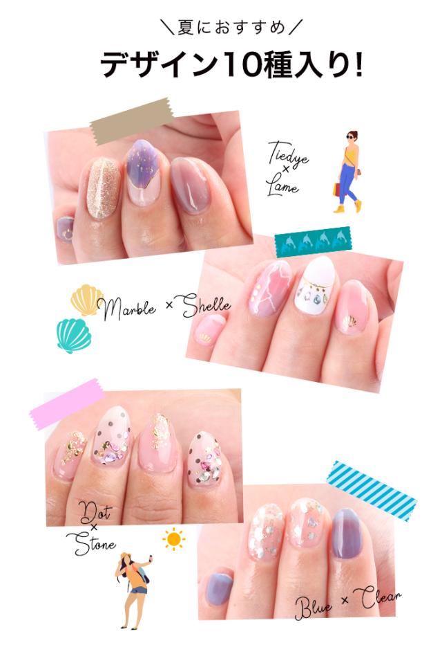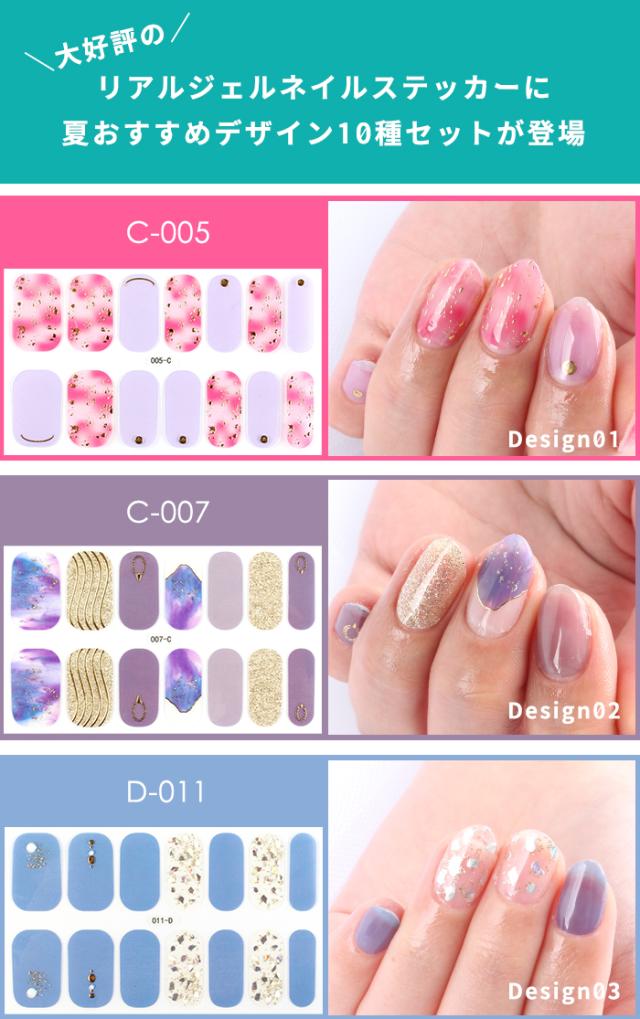 ジェルネイルシール メール便送料無料 [夏デザイン10種セット]貼るだけ!リアルジェルネイルステッカー | ジェルネイル セルフネイル ネイルシール ネイルステッカー ハンド 簡単 ジェルネイルキット 初心者 ネイル ネイル用品