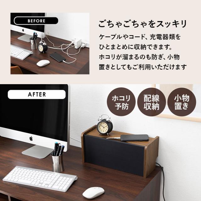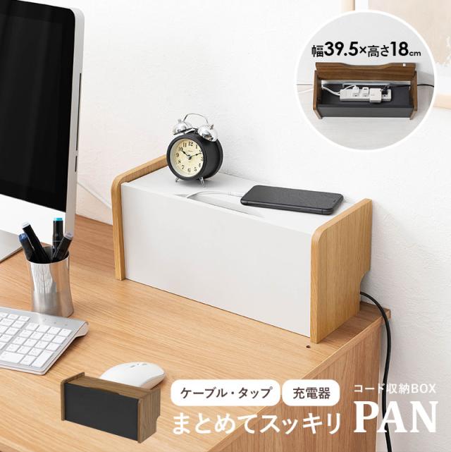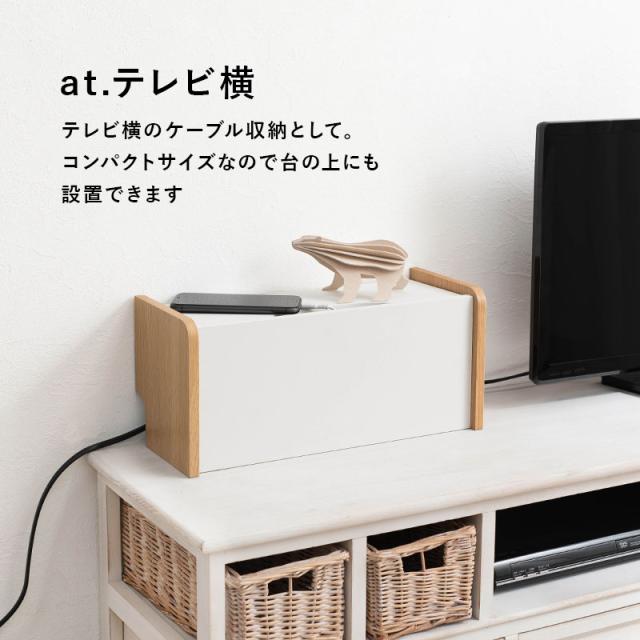 ケーブルボックス 木製 おしゃれ スリム 北欧 白 ケーブル 収納 ボックス コード 収納 隠す コード収納ボックス ケース デスク テレビ パン