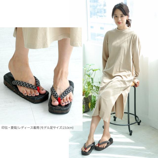 | 履き心地にもこだわった、日本製の竹皮表の下駄 グッとしなるソールで歩きやすい! 桐材の台に切り込みを入れたデザインでソールがしなりやすく、歩行をサポートします。 底面はラバーソールで滑りにくく音が鳴りにくい。 表面は黒く染め上げた天然竹皮。 カジュアルに普段履きしやすく、表付きのため正装履きにもお使いいただけます。 ■ブランド:竹春(TAKEHARU) ■生産地:日本 ■素材:[ソール]桐、[天]墨黒竹皮 ■重さ:メンズ約220g、レディース約190g (片足で計測) 桐や竹皮の質量により若干個体差がございます。 ■実寸サイズ メンズ:(約)縦25cm×横9.5cm、ソール(かかとで計測)4cm レディース:(約)縦23.5cm×横9cm、ソール(かかとで計測)3.5cm ■適応サイズ(目安) メンズ:約25.0〜26.5cm レディース:22.5〜24.0cm フリーサイズとなりますので、適応サイズはあくまで目安となります。 【履き始め・サイズについて】 履き始めは鼻緒が固く、履きにくさを感じるかと思いますので、鼻緒の後ろや先坪の部分を軽くほぐし、なじませるのをオススメします。 鼻緒の中に芯が入っていますので、指で挟んで曲げると履きやすくなります。 雪駄は本来、かかとを少し出して履くのが一般的な履き方とされております。 履いていてかかとが痛くないほどの出方がちょうど良いサイズです。 【長く使うためのコツ】 左右がありませんので、時々左右を履き替えて頂くと長持ちします。 <ご注意> 以下をご確認いただき、予めご了承くださいませ。 天然の桐、竹皮を使用し、日本国内で生産されたものです。 ※一点一点手作りの商品となりますので、写真と実際お届けする商品には若干見た目(お色味等)が異なる場合がございます。 ※下駄は材料の性質上、強い衝撃を受けると破損する場合がございますのでご注意ください。 下駄を履いて走ったり、砕石の砂利の上を歩くと歯が削れて消耗が早くなりますのでご注意下さい。 ・商品は防水されておりません。カビなどの原因となりますので、雨天時はご使用をお控えください。[2204r] |