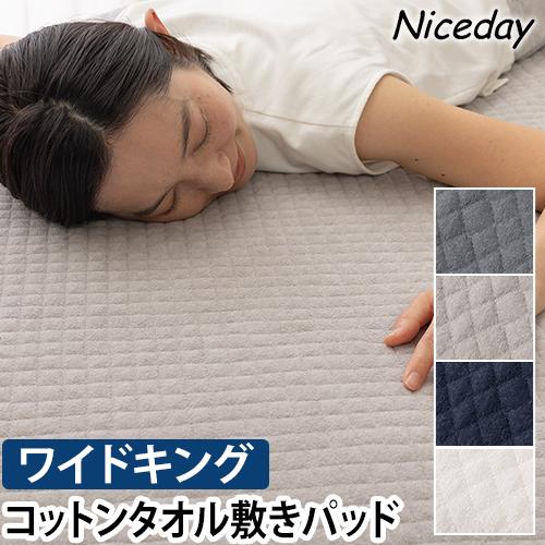 ナイスデイ 敷パッド さらっと快適 天然素材(綿100%)タオルの敷きパッド(中綿レーヨン入り) WK ワイドキング ベッドパッド 敷き布団 タオル地 敷布団 綿100% パイル オールシーズン 春夏 洗える コットン 子供 肌触り ゴムバンド付き Niceday