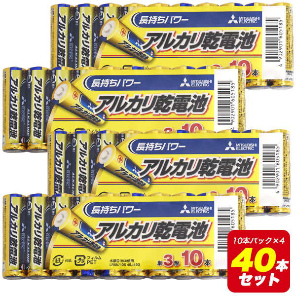 乾電池 40本 単3電池 お買得 まとめ買いセット 三菱電機 アルカリ乾電池 単3 乾電池 10本パック 4個セット 単三電池 乾電池 単三 電池 お得セット 安い アルカリ電池 セット販売 4パックセット 防災 備え 備蓄 予備電池 リモコン セット