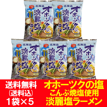 オホーツクの塩 淡麗ラーメン 送料無料 オホーツクの塩ラーメン 淡麗塩ラーメン インスタント 袋麺 つらら オホーツクの塩 ラーメン 乾麺 1袋×5袋 つらら ラーメン こんぶ焼塩 使用 ラーメンスープ 付き オホーツク ラーメン たんれい オホーツクの淡麗塩ラーメン