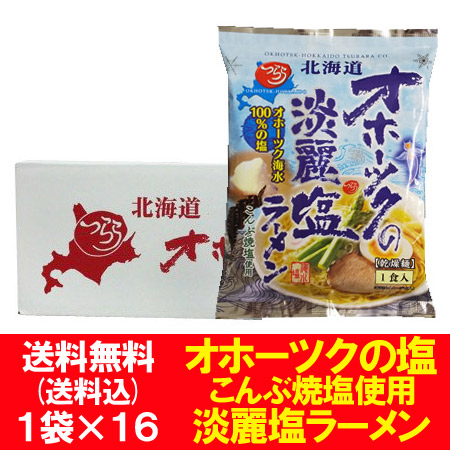 オホーツクの塩 淡麗ラーメン 送料無料 オホーツクの塩 ラーメン 淡麗 ラーメン たんれい 塩 インスタント 袋麺 つらら オホーツクの塩ラーメン 乾麺 16袋入 1ケース(1箱) つらら ラーメンスープ 付き オホーツク ラーメン オホーツクの淡麗塩ラーメン