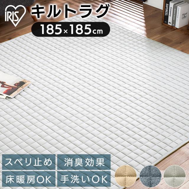 ラグ ラグマット 2畳 185×185 キルトラグ アイリスオーヤマ * ORG-M1818 洗える ラグカーペット 厚手 夏用 滑り止め付き 厚い おしゃれ 北欧 長方形 グレー ベージュ ブルー 絨毯 センターラグ リビング 手洗い オールシーズン キルト キルティング クール もっちり