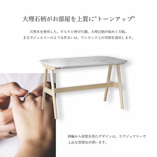 質感を追及した大理石柄とバーチの天然木を使用した脚の組み合わせで、ワンランク上の空間を作り上げます。