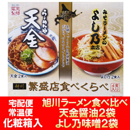 旭川ラーメン よし乃味噌ラーメン 天金醤油ラーメン 送料無料 よしの ラーメン 天金 ラーメンセット インスタント 袋麺 化粧箱入 各2袋(計4袋) 麺類 ラーメン 乾麺