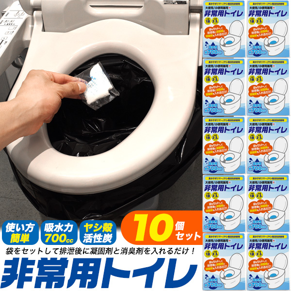 簡易トイレ 10個セット 防災用品 凝固剤 消臭剤付き 非常用トイレ 防災 災害 台風 断水 非常用 緊急簡易トイレ 防災グッズ 吸水力 700cc 使い方簡単 緊急トイレ 簡易 車中泊 キャンプ アウトドア 釣り 海 震災 地震 避難 対策 備蓄