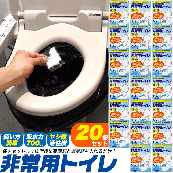 簡易トイレ 20個セット 防災用品 凝固剤 消臭剤付き 非常用トイレ 防災 災害 台風 断水 非常用 緊急簡易トイレ 防災グッズ 吸水力 700cc 使い方簡単 緊急トイレ 簡易 車中泊 キャンプ アウトドア 釣り 海 震災 地震 避難 対策 備蓄