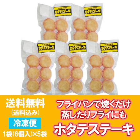 ホタテステーキ 送料無料 ホタテ ステーキ 冷凍 1袋(6枚入)×5袋 北海道 オホーツク海産 ほたて 帆立