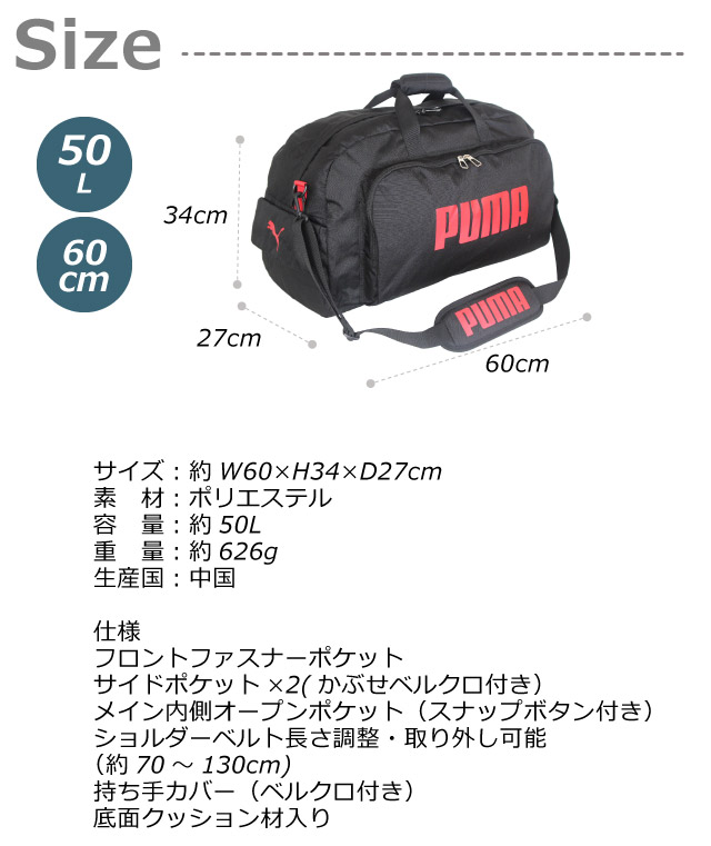 ■イメージ・その他:おしゃれ かわいい お洒落 おすすめ 人気 通販 かっこいい ビッグロゴ ロゴ スポーツブランド PUMA プーマ プーマバッグ 黒 ブラック 大容量 大型 2泊 1泊 1泊2日 3泊 4泊 3泊4日 軽量 バッグ