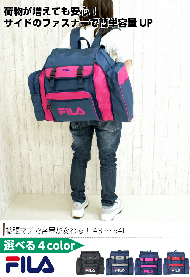 防災リュック 単品 FILA フィラ リムーブ サブリュック 54L 7369 送料無料 ブラック ネイビー レッド ピンク キッズ ジュニア バッグ リュックサック チェストベルト 大容量 大型 人気 女子 男子 男の子 女の子 メンズ レディース 山 災害 避難用 非常用持ち出し袋