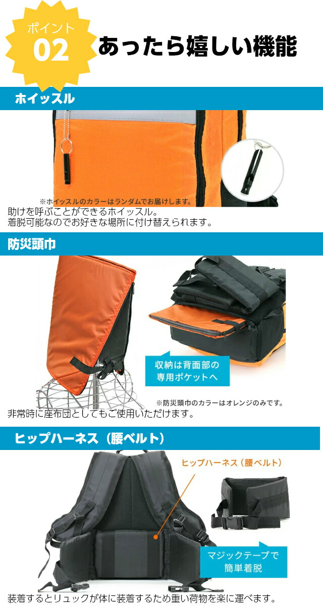 ![]() ![]() ![]() ![]() ![]() ![]() ![]() 水に浮く防災リュック ウエットスーツの素材である、 「EVA発泡材」を内蔵しているため、水に浮きます。 沿岸地域にお住まいの方、職場や学校が海辺に近い方などにご準備していただきたい防災リュックです。 防災頭巾・ホイッスル・腰ベルト・反射テープが付属しています。 防災用品を詰めて、非常時の持ち出しバッグとして、 また、普段使いとしてもお使いいただけます。