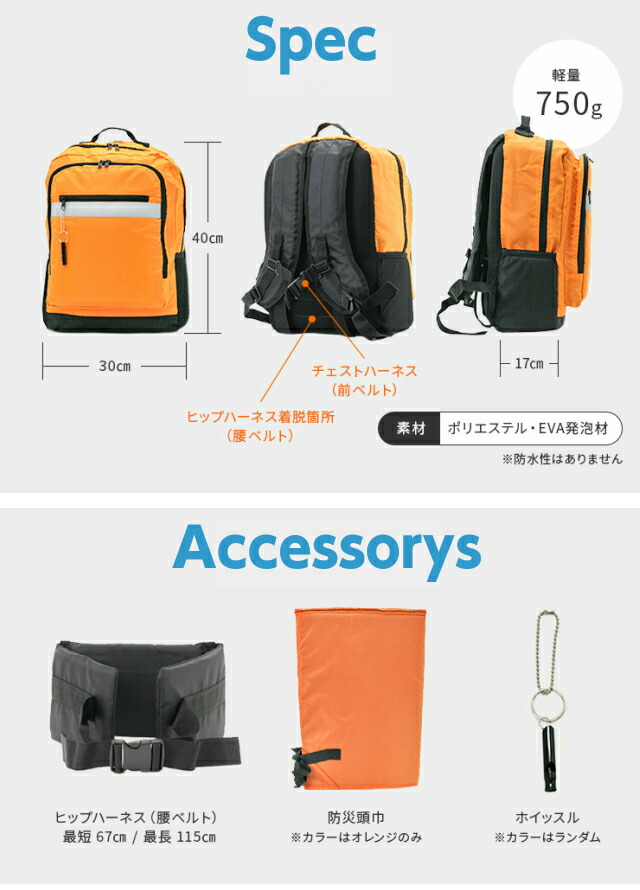 ■イメージ その他:防災バッグ 防災リュック 1人用 1人用 水に浮くリュック 撥水 水害対策 地震対策グッズ ホイッスル ハーネス 反射材 リフレクター 軽量 震災 災害 水害 津波 豪雨 水難 洪水 救助 黒 ブラック 青 ブルー 赤 レッド オレンジ 防災グッズ 沿岸地域 高波 救命補助具 浮力補助具
