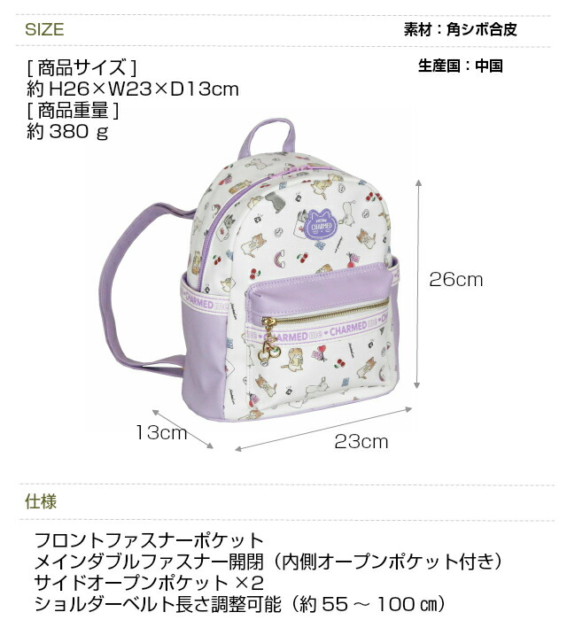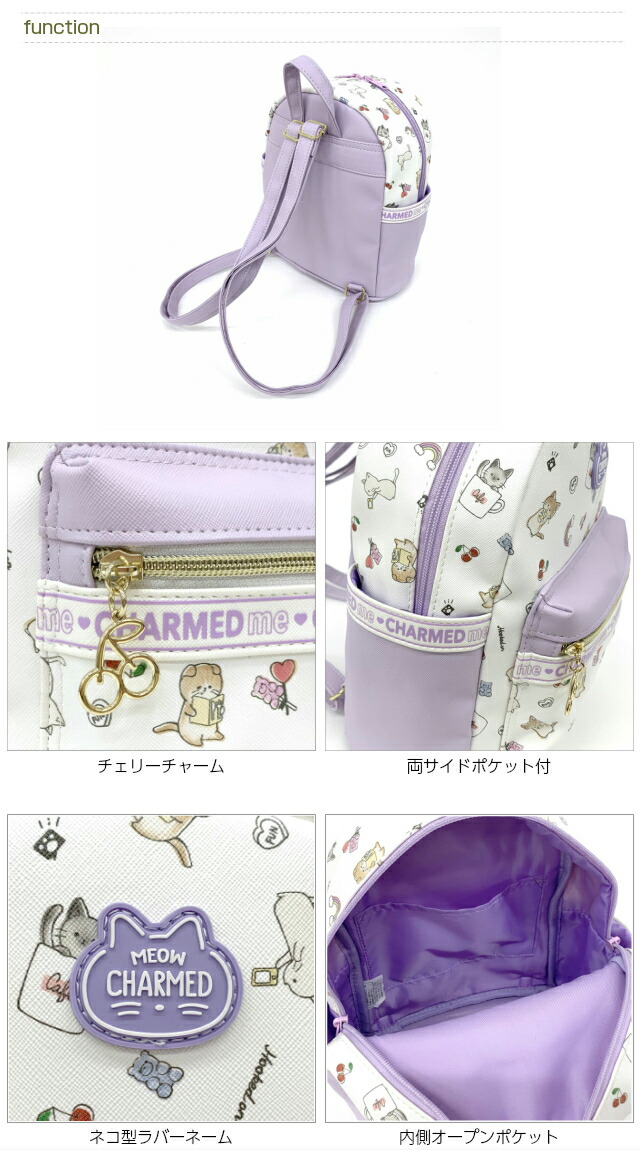 ![]() ![]() ![]() ![]() ![]() ・pop parlor CATチェリー ネコとチェリーが散りばめられたかわいいミニリュック。 サクランボのファスナーチャームがポイント。 ちょっとショルダーを長めにしてルーズに背負うといまどきコーデに。 旅行・遠足・通園・通学・お出かけにおすすめ。 誕生日プレゼント・クリスマスプレゼントにも人気です。