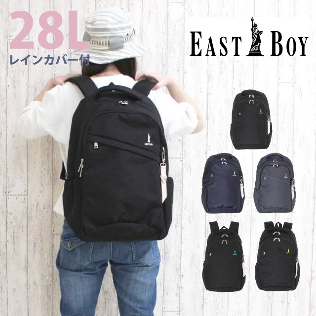 通学 リュック 女子 中学生 大容量 EAST BOY イーストボーイ プランタン リュックサック デイパック レインカバー付き 28L eba28 撥水 小学生 高校生 おしゃれ かわいい 人気 女子高校生 入学祝い 部活 黒 紺 無地 グレー ブラック ネイビー 女の子 A4 抗菌防臭 軽量