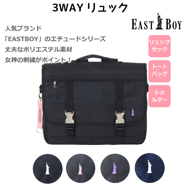 塾 バッグ 女の子 EAST BOY イーストボーイ エチュード 3wayリュック eba47 塾バッグ リュック 通塾リュック 通学バッグ リュックサック 小学生 女子 高学年 習い事 ピアノ 3wayショルダー a4 b4 大容量 塾用 かばん おしゃれ ブランド 黒 紺 自由の女神 習い事バッグ 人気