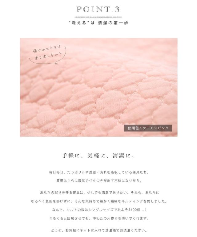 綿100%の水洗いキルトを使った、お肌をいたわるやさしい寝具です♪