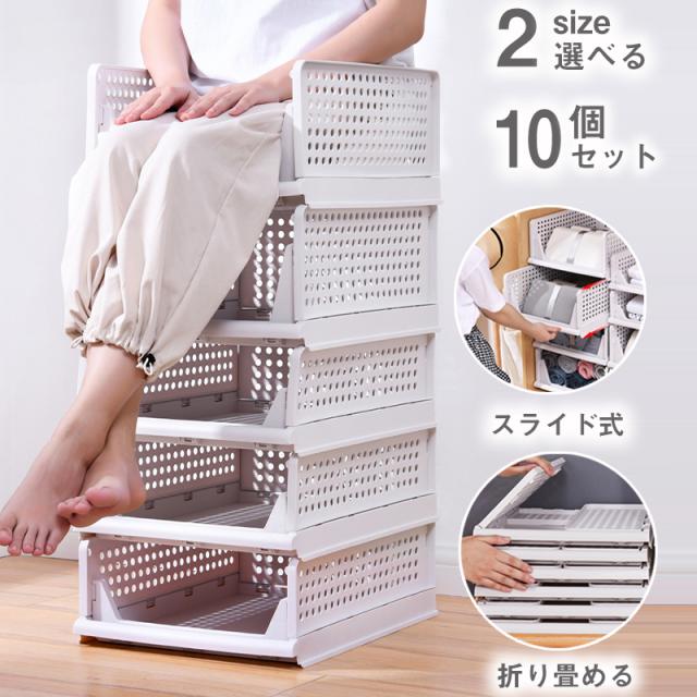 【10個セット】深型 浅型 クローゼット スタッキング 収納ボックス ラック ホワイト 押入れ 引き出し 収納ケース 収納 チェスト 重ねる 組み合わせ リビング 子供部屋 おもちゃ 長方形 小物収納 衣類収納 洋服 シンプル 新生活 クリアケース すき間収納 収納家具