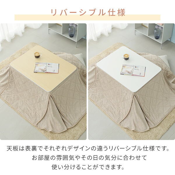 | 商品説明 | ●【こたつ本体】 ●電源:100V (50Hz/60Hz) ●ヒーター型番:NCH-302 ●消費電力:300W ●電気代目安(1時間あたり):(強)4.03円、(弱)1.86円 ●※電力料金目安単価1kWhあたり31円(税込)で算出 ●電源コード:中間入切スイッチ ●電源コード長さ:3m ●天板はリバーシブル仕様 ●メーカー保証:1年 |