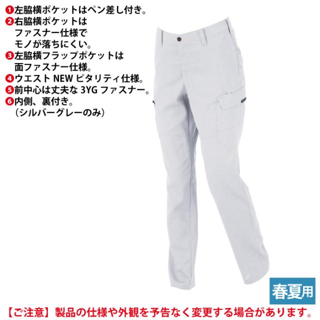 ◇機能:左脇横ポケットはペン差し付き。右脇横ポケットはファスナー仕様でモノが落ちにくい。左脇横フラップポケットは面ファスナー仕様。ウエストNEWピタリティ仕様・前中心は丈夫な3YGファスナー・シルバーグレーのみ内側裏付