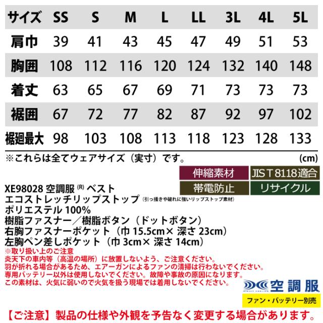空調服 ジーベック XEBEC 作業服 XE98028 空調服ベスト SS-LL 作業着 春夏用 熱中症 レジャー アウトドア スポーツ