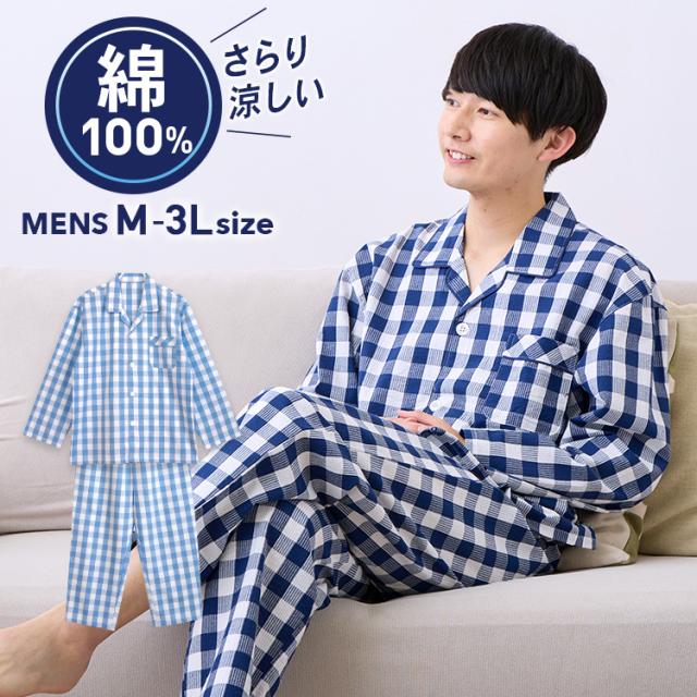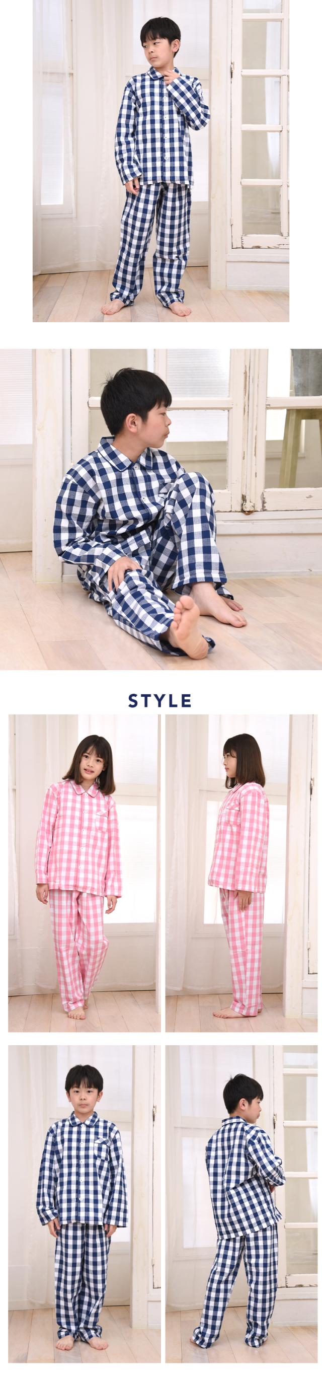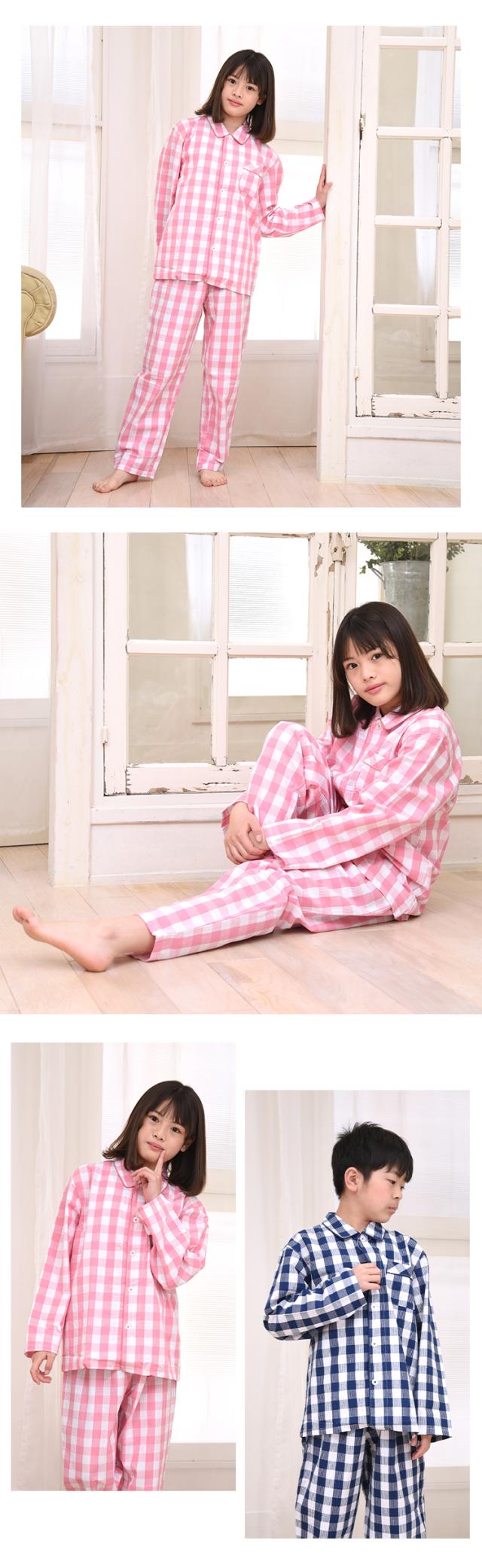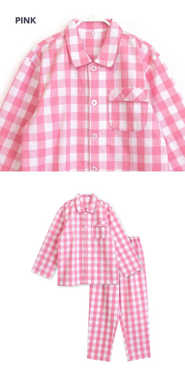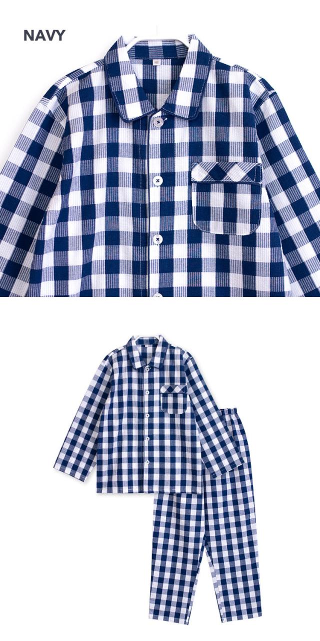 パジャマ キッズ 男の子 女の子 綿100% 長袖 春 夏 先染めサッカー 前開き ボタン シャツ ギンガムチェック ネイビー ブルー ピンク ミント 140 150 160 おそろい