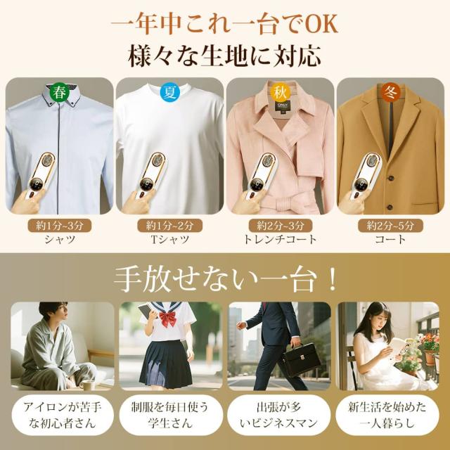 - ハンカチ等小物をやるには問題なし!ワイシャツ等になるとスチームが弱いのからなのか、やり方が下手なのか、コツがつかめず、スパッとならず、その他は問題ないです