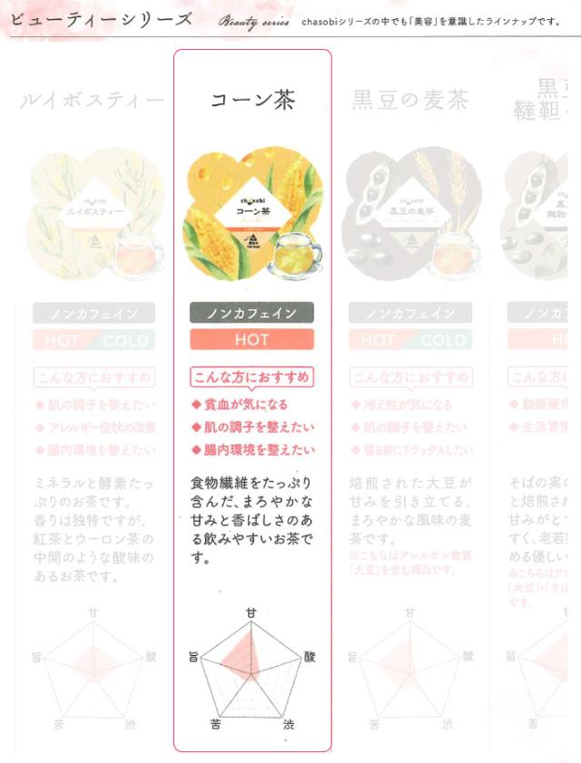 フレーバーティー コーン茶 ノンカフェイン ティーバッグ 10袋入り 送料無料 「ちゃそび」chasobi ビューティーシリーズ カフェインレス お茶 茶 トウモロコシ とうもろこし agesugi_sgu