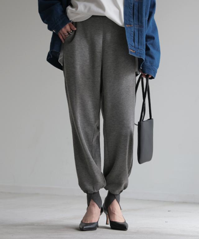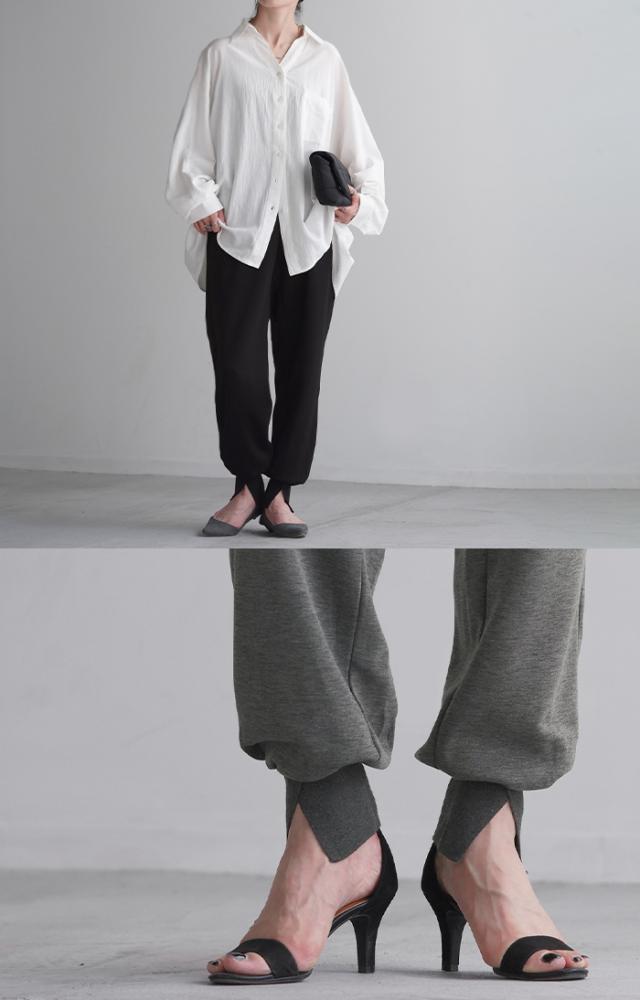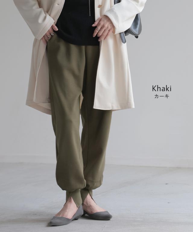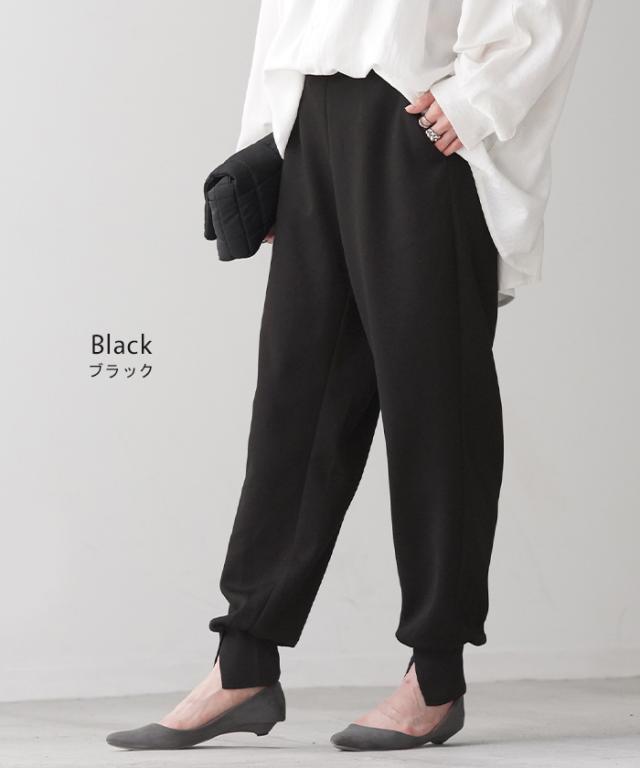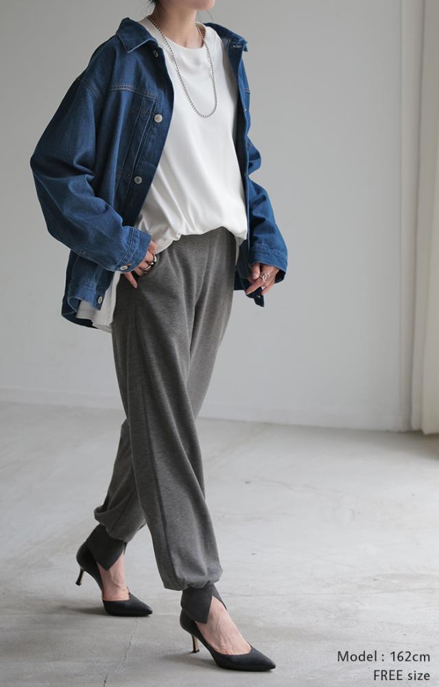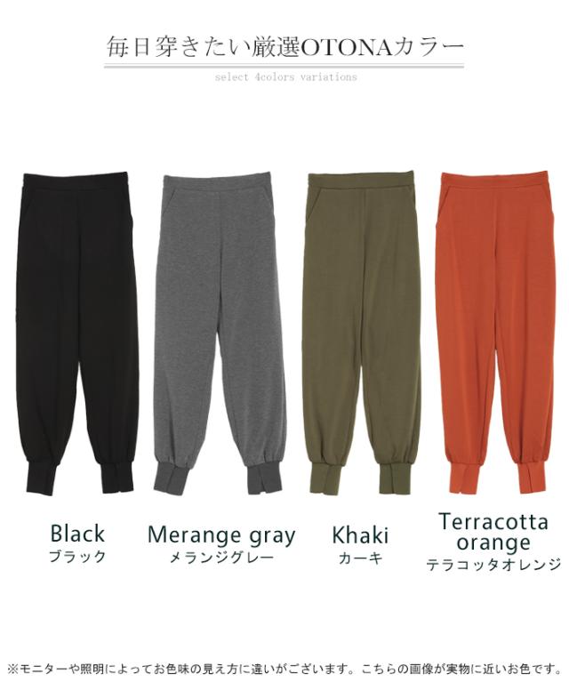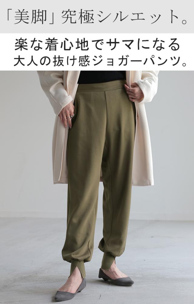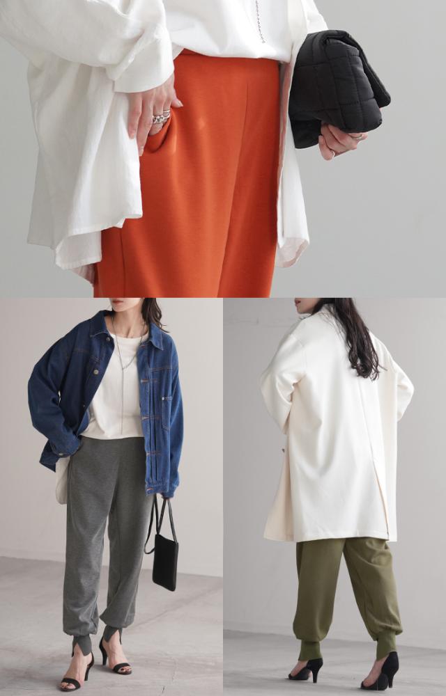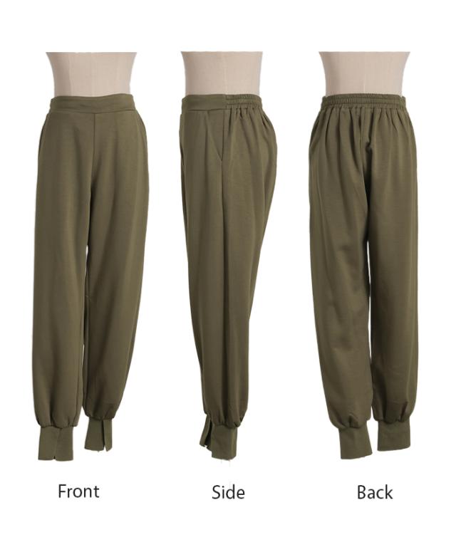 長めの裾リブとスリット入りが女性らしいジョガーパンツです。