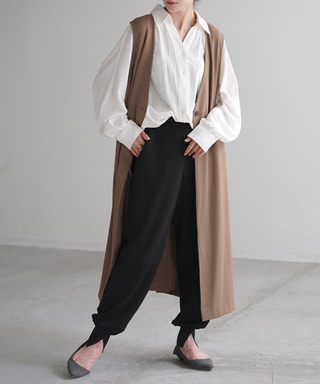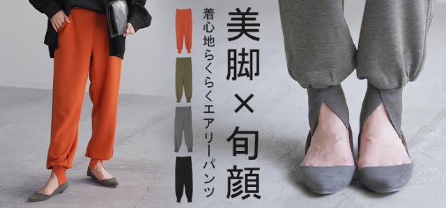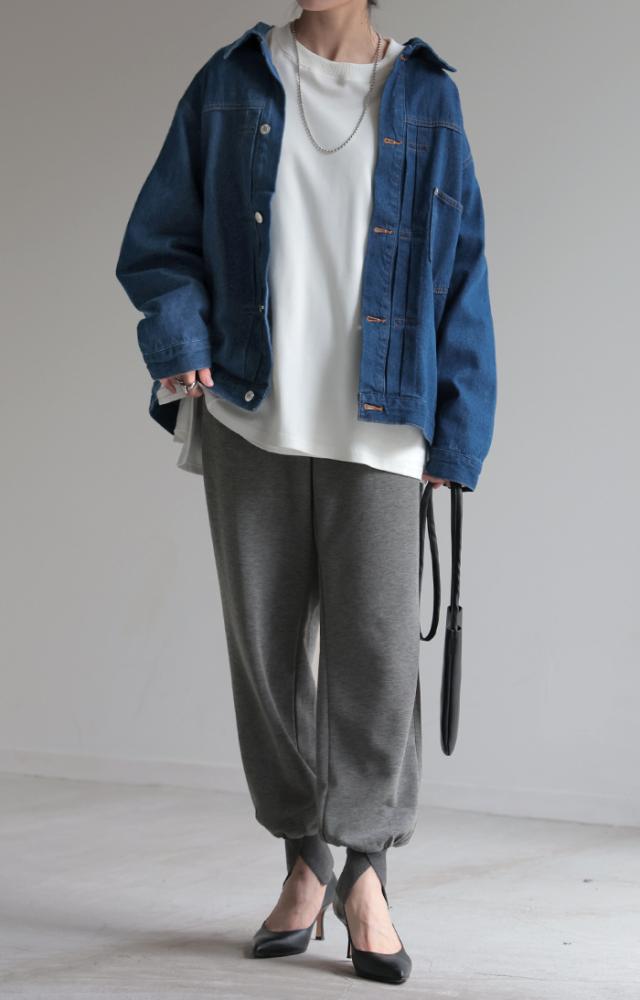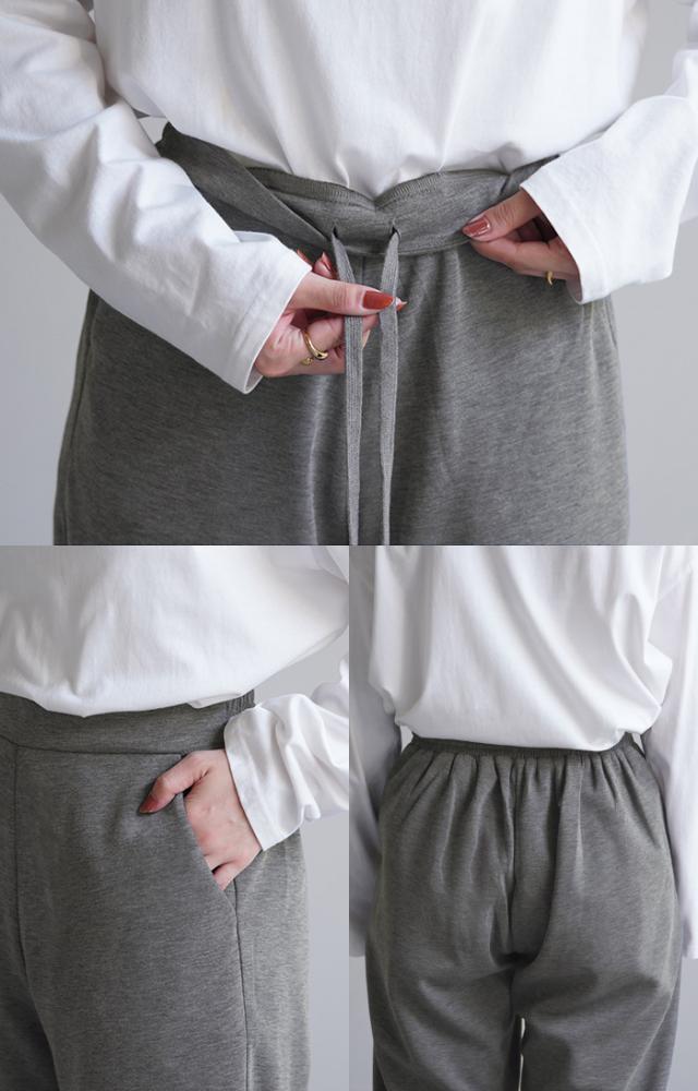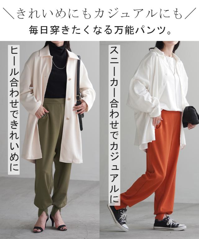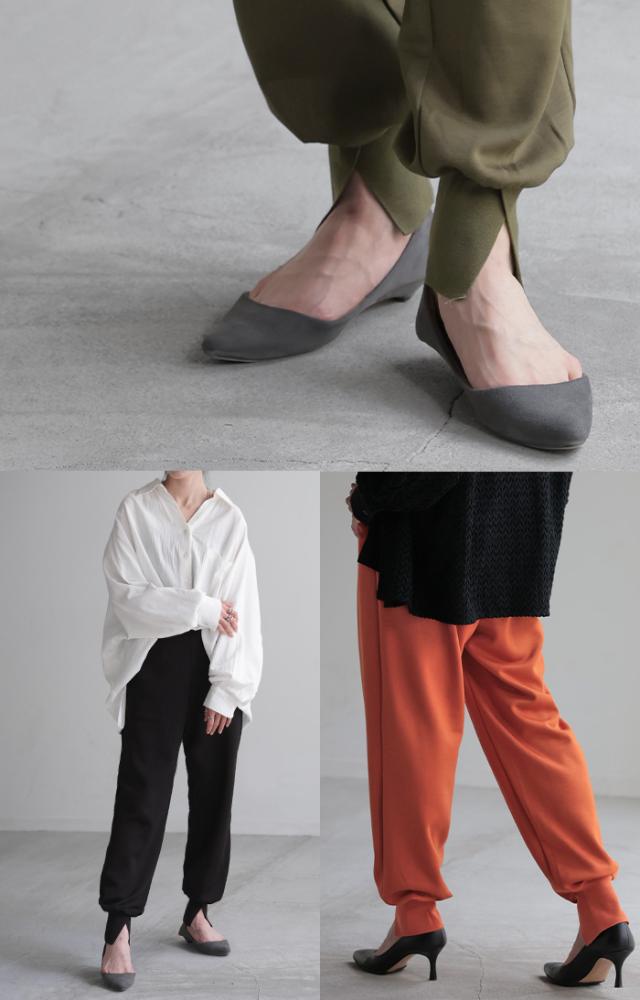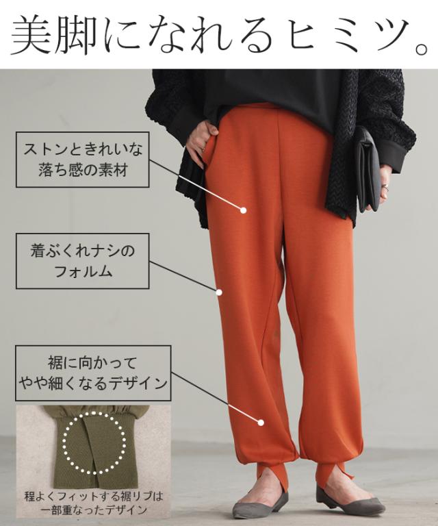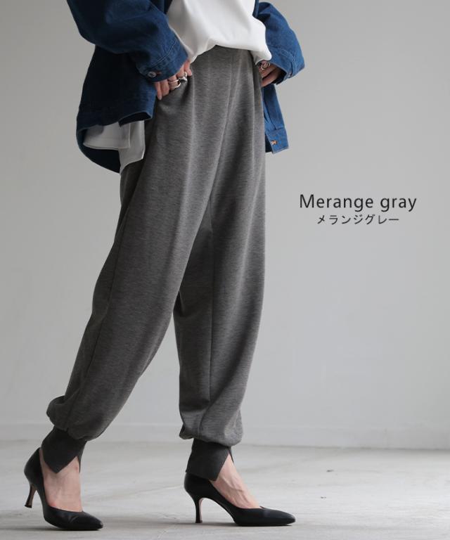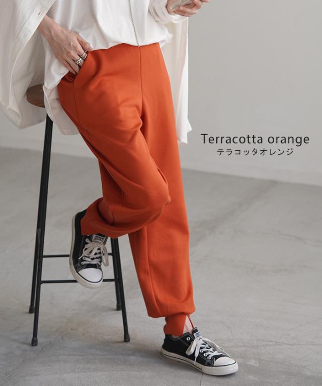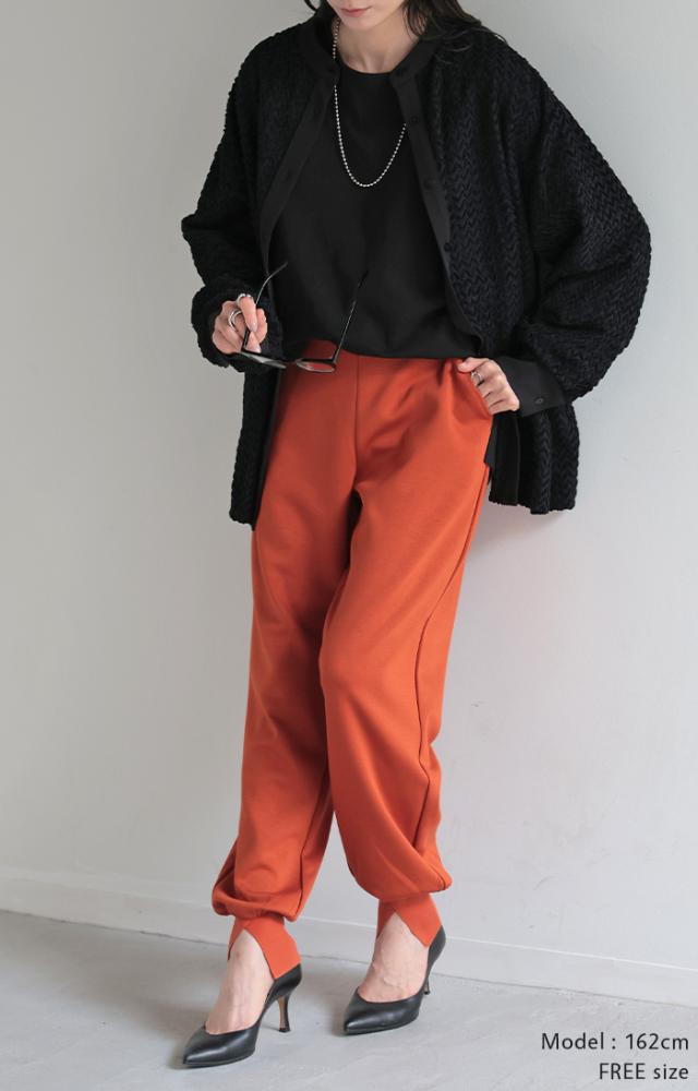 長めの裾リブとスリット入りが女性らしいジョガーパンツです。