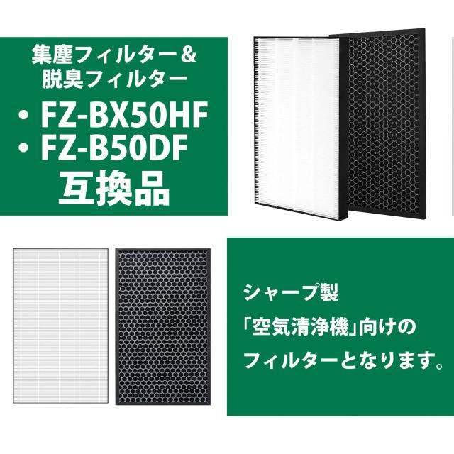 30%offクーポン有 FZ-BX50HF + FZ-B50DF 集じん+脱臭フィルター セットパック 空気清浄機 互換フィルター 非純正 互換品 加湿器 互換フィルター VX