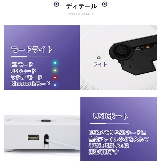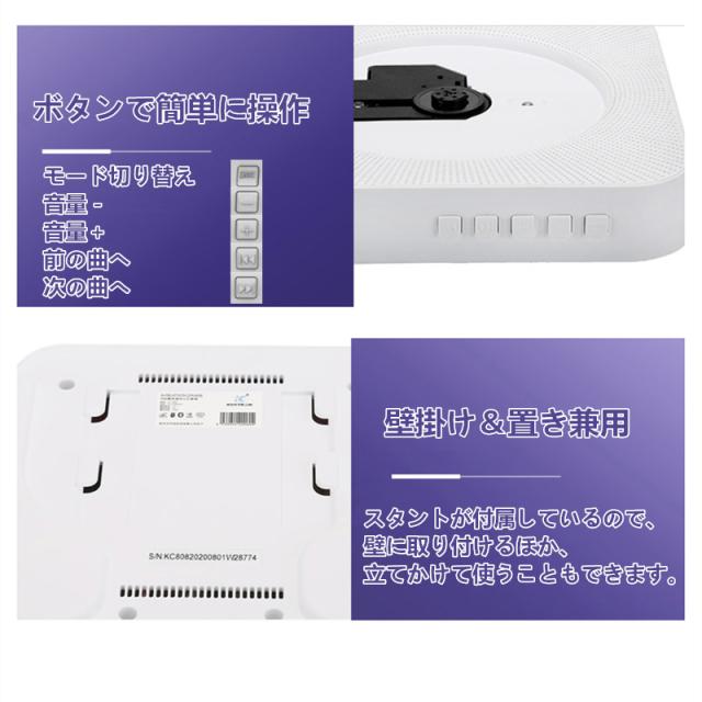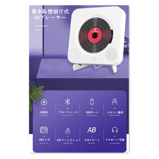 送料無料 卓上CDプレーヤー 置き 壁掛け式 ポータブルCDプレーヤー Bluetooth5.0 高音質 スピーカー FMラジオ 音楽再生 USB Bluetooth対応 日本語説明書付き