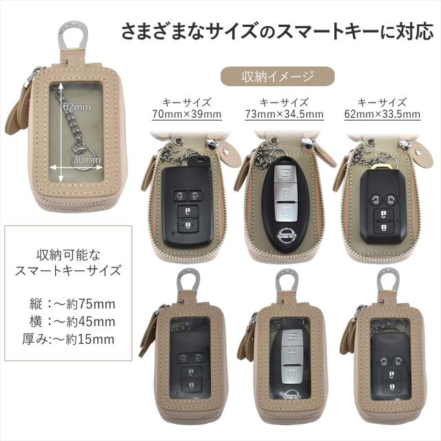 スマートキーケース 2個収納 クリア窓付き キーケース 大人可愛い カラビナ付き ダブルジッパー おしゃれ 車の鍵 鍵入れ キュリオキー スマートキー かわいい 車 2つ 2個 家の鍵 シボ加工 カバー くすみカラー 大人女子