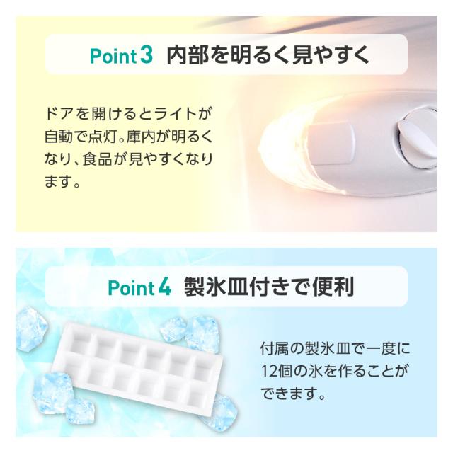 一人暮らしの方はもちろん、2台目の冷凍冷蔵庫としてもおすすめのコンパクト設計。
