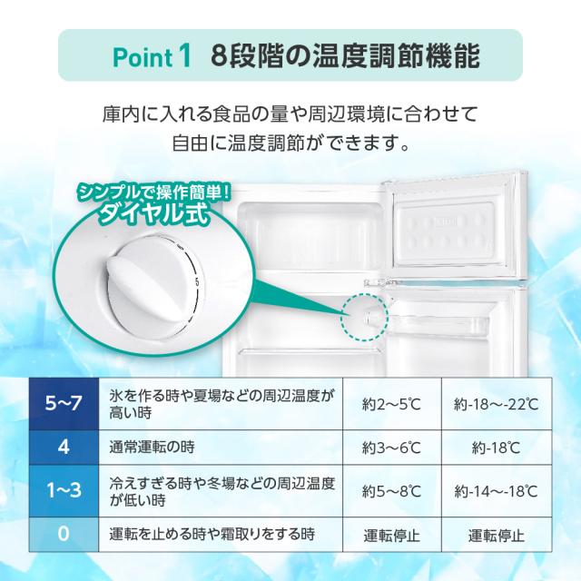 庫内に入れる食品の量や周辺環境に合わせて自由に温度調節ができます。