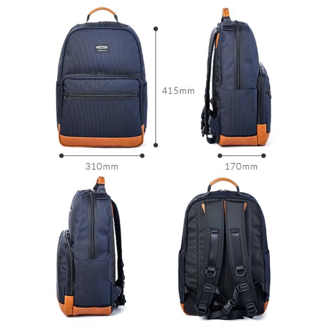 | ブランド |WONDER BAGGAGE / ワンダーバゲージ シリーズ |GOODMANS / グッドマンズ 品番 |WB-G-032 形状 |DAYPACK NEO / デイパック ネオ |リュック バックパック 外寸 |W310×H415×D170[mm] |(前面ファスナーポケット D:30mm) |(メイン収納部 D:140mm) 重量 |約 880g 収納サイズ |A4ファイル / 16inch MacBook Pro 素材 |国産バリスターナイロン |厚口オイルシュリンクレザー 生産国 |日本製 / Made in Japan |