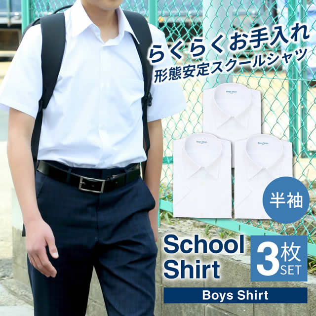 半袖 スクールシャツ 男子 3枚セット 白 制服 学生服 シャツ ワイシャツ 形態安定 at-ch-sre-1900-3fix イージーケア 中学生 高校生 メンズ カッターシャツ ブレザー A体 【宅配便のみ】 父の日