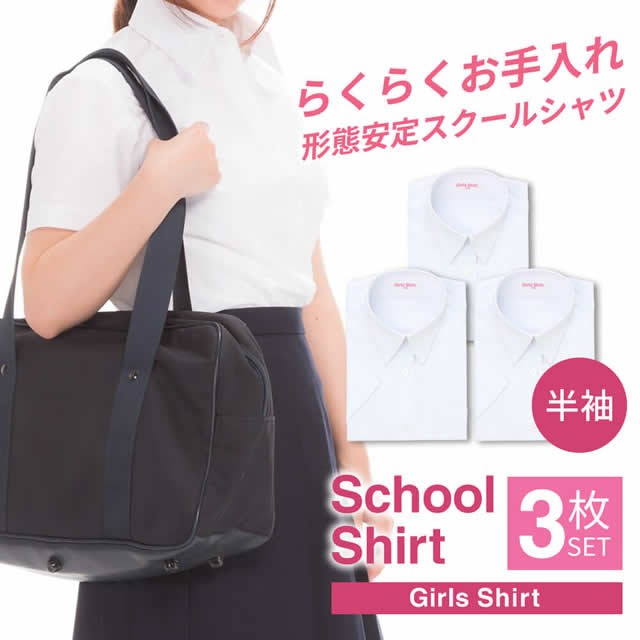 学生服 ブラウス シャツ 3枚セット スクールシャツ 女子 半袖 白 制服 ワイシャツ 形態安定 イージーケア at-ch-sre-1901-3fix 中学生 高校生 レディース セット カッターシャツ ブレザー A体